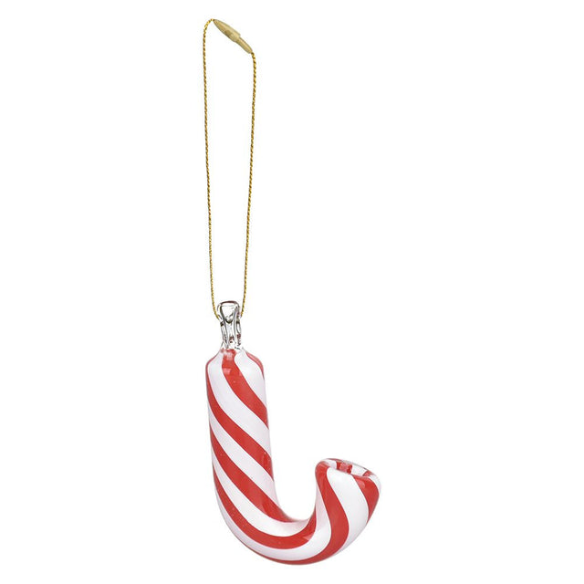 Santa's Secret Hangable Glass Christmas Ornament Hand Pipe - 3.25" / Candy Cane