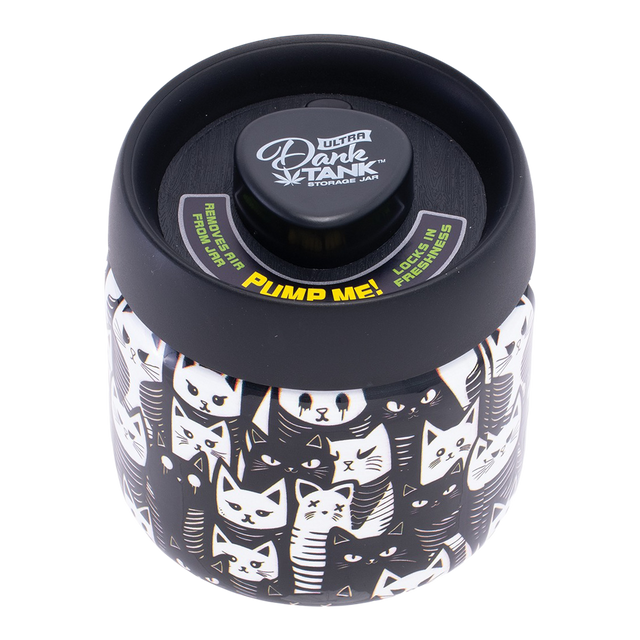 Don't compromise on quality or style. Elevate your herb storage game with the Fujima Dank Tank Vacuum Glass Jar - 4.2" / Black & White Cats. Order yours today and experience the perfect harmony of design and practicality!