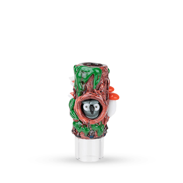 Experience the enchanting beauty of the Redwood Forests through the mesmerizing "Renew the Redwoods Collection" by Stündenglass x Empire Glassworks. Crafted with precision and artistry, this hose tip transports you to the heart of the forest with its intricate tree trunk design, adorned with delicate details such as mini fungi, green moss, and a captivating owl's eye. Simply swap out the hose tip on your Stündenglass unit with this exquisite Redwood-inspired piece to elevate your smoking experience.